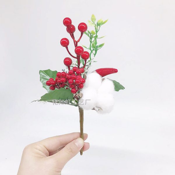 Christmas pine needles, red fruit cuttings, pine cones, cotton branches, Christmas trees, Christmas wreaths, DIY accessories, gift boxes, greeting card decorations